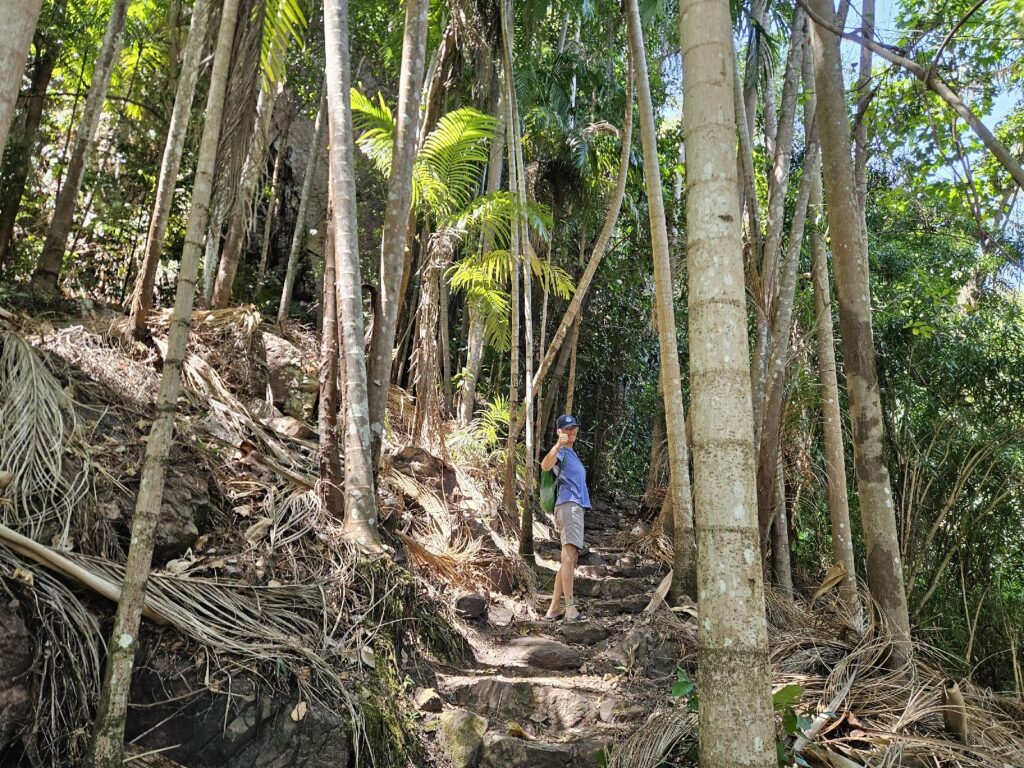 In diesem Bericht führt die Reise von Townsville weiter der australischen Ostküste nordwärts nach Cairns und weiter zu den Low Islets, wo wir aktuell an einer Mooring liegen.Für die Reparatur unseres defekten Genua-Furlers verlegen wir von Magnetic Island in die riesige Breakwater Marina im nahe gelegene Townsville.Die beiden neuen Motoren für den Furler und ein neuer Zahnriemen (rotes Teil im Bild) sind vom Hersteller in Schweden innerhalb von 2 Wochen pünktlich eingetroffen. Ich hatte vorher schon alles zerlegt und gereinigt, und die Montage der neuen Teile durch einen Markenvertreter funktioniert tadellos.Wir wollen in der Marina auch noch unser Unterwasserschiff reinigen lassen. Bisher haben wir das selber gemacht, aber hier in Australien mit den vielen gefährlichen Tieren im Wasser getrauen wir uns nicht. Eines Morgens finden wir vor den Eingängen in die Marina dieses Schild, das informiert, dass in den letzten Tagen ein Krokodil in der Marina gesehen wurde. Das zerstört auch diesen Plan: wir finden keinen Taucher, der sich in dieser Situation ins Wasser wagt – verständlich!Direkt hinter unserer Marina ragt ein imposanter Berg empor. Der «Castle Hill» ist einer der markantesten Berge entlang der Küste von Nord-Queensland. Er ist offiziell 286 Meter hoch, genau 14 Meter zu wenig, um als «Mountain» (Berg) anerkannt zu werden. Im Juli 1980 haben Schüler einer lokalen High School eine drei Meter hohe Pyramide gebaut, um den «Hill» zum «Mountain» zu machen. Wohl keine gute Referenz für ihren Mathematiklehrer! Uns ist das egal: wir wollen da rauf!Castle Hill: eine herrliche Aussicht auf Townsville mit dem Mount Cleveland im Hintergrund, der durch eine breite, flache Landzunge mit dem Festland verbunden ist. Townsville war um die 1850 eine kleine Siedlung, die hauptsächlich als Zentrum für Vieh- und Schafzucht in der Umgebung diente. Goldfunde im Hinterland führte zu einem dramatischen Aufschwung der Stadt. Um 1900 war Townsville eine der wichtigsten Hafenstädte in Nord Queensland.Die Natur und die Tiere – immer wieder spannend beim Reisen: nach langer Suche im Internet identifiziert: Blue Faced Honeyeater oder Blauohr-Honigfresser, er kommt hauptsächlich in Nord und Ostaustralien vor.Nebst Unterhalts- und Putzarbeiten am Schiff sowie Ausflügen in der Umgebung geniessen wir auch wieder mal das Nachtleben in Townsville. Hier eine Brauerei …… oder hier eine Taverne mit Livemusik. Davon gibt es in Queensland übrigens sehr viel. Fast jedes Pub oder jede Bar, die etwas auf sich hält, hat am Wochenende Livemusik. Diese Band hier hat richtig markigen Rock im Programm: von ZZ-Top über AC-DC bis Queen – super Sound!Nach einer Woche verlassen wir Townsville und setzen Segel Richtung Palm Islands. Es herrscht perfektes Segelwetter. Das Wasser ist flach und der Wind stark genug, dass uns die Genua reicht.Happy wife – happy life! Was will Mann mehr?!Unterwegs erspähen wir immer wieder Buckelwale, die jetzt in dieser Jahreszeit vom kalten Süden in den warmen Norden migrieren, um hier ihre Jungen zu gebären. Leider bekommen wir sie nur immer kurz und in grosser Distanz vor die Linse.Sonnenuntergang auf Great Palm IslandAuch auf den nächsten Etappen der Küste entlang ständige Begleiter – die riesig grossen BuckelwaleIn kurzen Tagesetappen geht es gemächlich nordwärts. Wir wählen unsere Tagesziele immer so, dass wir noch genügend Zeit haben, die Umgebung des Ankerplatzes etwas zu erkunden. Dies ist jedoch nicht immer möglich, weil es manchmal das Wetter nicht erlaubt, oder die Insel nicht zugänglich ist. Auf Goold Island finden wir aber ideale Verhältnisse vor für einen Landgang.Goold Island läuft im Südwesten in einer langen Sandbank aus. Im Hintergrund grüssen die hohen Berge des Festlandes.Auch unser Lupinchen geniesst den Strand. Und ihr gut erkennen könnt, es ist weit und breit kein anderes Schiff zu sehen. Wir sind meistens alleine.Wie fast alle Inseln im Great Barrier Reef Gürtel ist auch Goold Island Teil des Nationalparkes. Auch hier gibt es vom Staat unterhaltene, öffentliche Camping-Plätze, die rege benutzt werden. Aber halt! Da ist doch ein gelbes Warnschild!Es scheint, die Australier sind mit Krokodilen gross geworden, oder sie sind halt einfach ein bisschen verrückt. Nur so können wir es uns erklären, dass sie überhaupt auf die Idee kommen, in einem Gebiet, wo Krokodile leben, im Freien campieren zu wollen. Wir sind froh, haben wir die Lupina! An der beisst sich ein Krokodil die Zähne aus.Lupina an einer öffentlichen Mooring (Boje) vor Dunk Island.Auf Dunk Island gab es früher ein sehr gut besuchtes Resort, das aber im Jahre 2011 durch Zyklon Yasi zerstört wurde. Der Besitzer nahm das Geld von der Versicherung und verschwand über alle Berge. Heute, fast 15 Jahre später, versucht ein neuer Besitzer der Insel wieder Leben einzuhauchen. Eine Fähre vom nahen Festland bringt Tagesbesucher, was aber sehr wetterabhängig ist. Wir finden schönstes Wetter vor und geniessen einen gut markierten und bestens unterhaltenen Wanderweg, der rund 10 Kilometer um die Insel führt.Falls ich es noch nicht erwähnt habe: wir sind mittlerweile wieder in den Tropen angekommen. Auf Dunk Island fantastisch zu erleben. Je nach Hanglage und Ausrichtung verändert sich das Bild. Einmal ist der Wald locker bewachsen und mit vielen Bäumen, manchmal dann eher trocken und licht, oder sehr düster und dunkel und nur ein paar Schritte weiter wie hier, üppig und scheinbar undurchdringbar.Wir sind erstaunt über den gut ausgebauten Wanderweg. Ganz oben bei der Aussichtsplattform können wir an einem Schild nachlesen, warum das so ist: Wie auf vielen vorgelagerten Inseln wurde während des 2. Weltkrieges auch auf Dunk Island eine Radarstation errichtet zum Zwecke, sich annähernde feindliche Flugzeuge oder Schiffe früh zu erkennen und die Häfen am Festland vorzuwarnen. Der Pfad wurde damals von Soldaten gebaut. Heute hat man von der Stellung der ehe