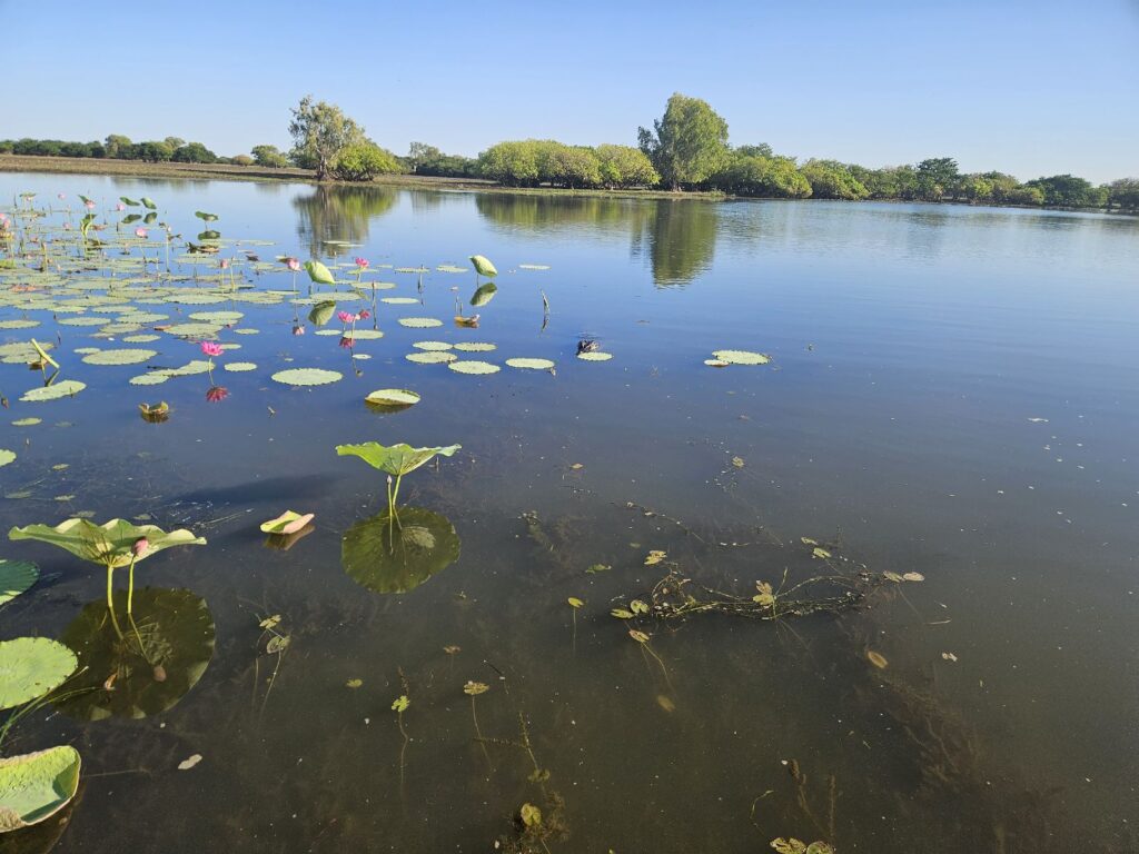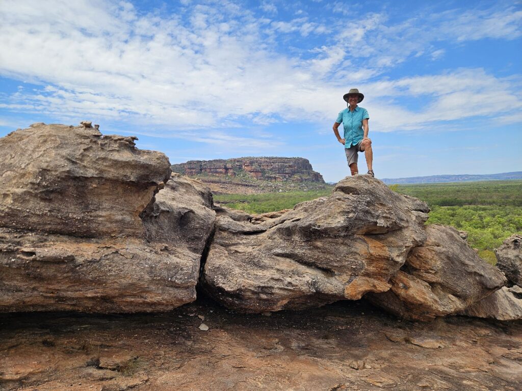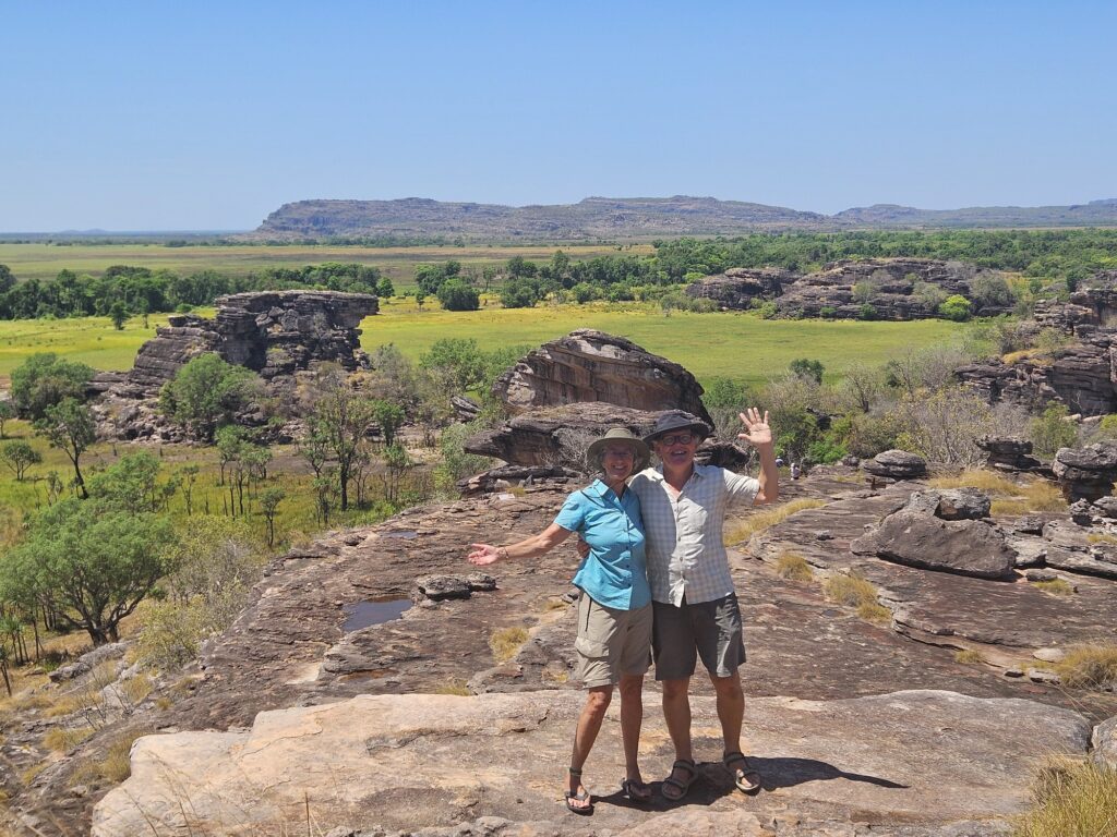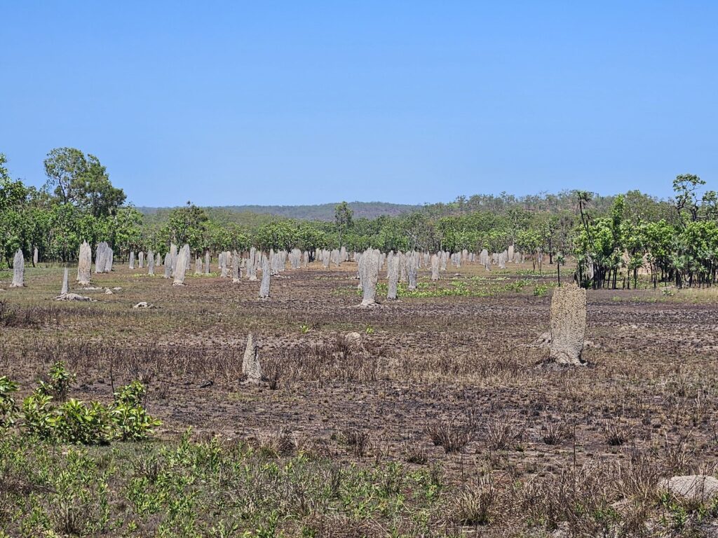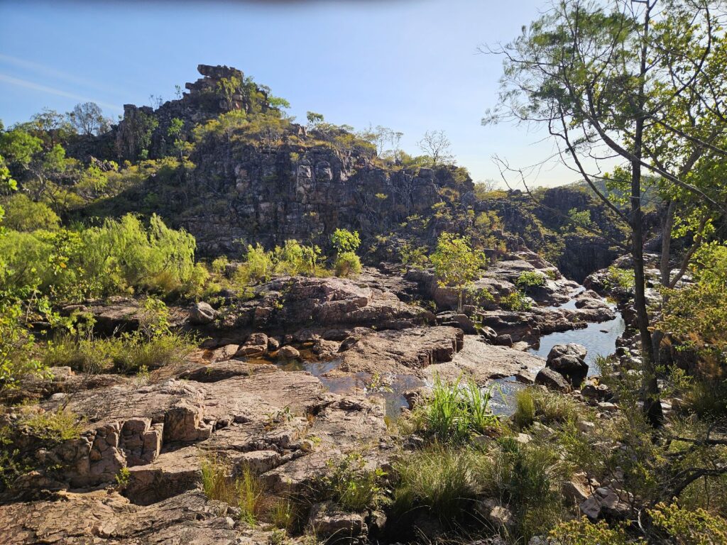 Mit dem Camper bereisen wir den gelb umrandeten Bereich. Ursprünglich waren nur der Litchfield und der Kakadu NP geplant (rot umrandetes Gebiet) Tipp: schau dir unsere bebilderte Reise in der gratis APP «POLARSTEPS» an (www.polarsteps.com) Nun der Reihe nach! Unsere Reise führt uns zunächst wie ursprünglich geplant Richtung Litchfield NP. Unterwegs fällt uns schon bald auf, dass offenbar viele Wälder von Waldbränden betroffen waren. Überall sehen wir deutliche Zeichen: angesengte Baumstämme, abgebranntes Unterholz und Gras. Wir erfahren, dass die Brände absichtlich von Menschenhand gelegt werden, um brennbares Material zu entfernen, solange es noch in geringer Menge vorhanden ist. Würde man das nicht machen, gäbe es viel mehr trockenes Holz und Gras. Ein etwa durch Blitzschlag entfachter Waldbrand würde dann schnell zu einer unkontrollierbaren, verheerenden Feuersbrunst ausarten. Schon bei den Ureinwohnern war es Tradition, zu Beginn der Trockenzeit kontrollierte Feuer zu legen, um auf diese Weise ihren Lebensraum gezielt zu pflegen und zu schützen. Die hier heimischen Pflanzen und viele Tiere haben sich an solche kleinere Feuer angepasst und können es überleben.Unser erster Stopp im Litchfield NP gilt der stillgelegten Zinn Miene von Bamboo Creek. Hier wurde in den 1940er Jahren während rund 12 Jahren unter härtesten Bedingungen Zinn abgebaut. Zwei der drei Besitzer der Miene verstarben Anfang der 50er Jahre an Lungenerkrankungen, die vom Staub in den Mienen verursacht wurden. Nachdem 1952 enorme Regenfälle die Stollen überfluteten, wurde der Zinn Abbau für immer eingestellt. Zurückgeblieben sind ein paar Einrichtungen, wie etwa das Steinbruchgebäude im Bild, wo das Erz mit dem Zinnvorkommen gebrochen und dann wie Gold ausgewaschen wurde.Innerhalb von kurzen Distanzen verändert sich die Landschaft schnell. Ausschlaggebend ist das Wasser. Bei Regenfall saugt der Boden aus Sandgestein das Wasser wie ein Schwamm auf. An der Oberfläche wird es schnell wieder trocken, entsprechend ist die Vegetation spärlich. Entlang von Flüssen und Wasserläufen ist die Vegetation dagegen tropisch und üppig.Das in den Sandfelsen aufgesaugte und gespeicherte Wasser wird an vielen kleinen, weit verstreuten Quellen wieder abgegeben. Auch in der höchsten Trockenzeit fliesst Wasser aus dem natürlichen Speicher. Die Wangi Wasserfälle (Bild) ergiessen sich vom Hochplateau in einen grossen Pool. Der perfekte Ort für ein kühlendes Bad.Bei den meisten Wasserfällen im Litchfield NP ist Baden möglich, da Krokodile die Höhendifferenz vom Meer und den tiefer gelegenen Sumpflandschaften schlecht überwinden können und deshalb in den höheren Gegenden selten sind. Allerdings, ohne Reptilien geht es auch hier nicht. Vor uns rennt dieser rund 1.2 Meter lange Gelbfleck-Waran ins Wasser.Ein paar Kilometer weiter im Litchfield NP folgen die Tjaetaba Wasserfälle. Das Besondere hier: die Quellen für diesen Wasserfall befinden sich nur unweit der oberen Kante und sind über einen kurzweiligen Wanderweg bequem erreichbar.Aus der Quelle oberhalb des Tjaetaba Wasserfalles sprudelt glasklares, kühles Wasser. Wunderbar für ein Fussbad. Ich bin mit Pia am Plaudern, als mich an den Füssen etwas kitzelt. Immer mehr. Nach kurzer Zeit krabbeln mehrere kleine Flussgarnelen an meinen Füssen herum und zupfen alte Hautreste weg. Eine perfekte Fusspflege.Pia verzichtet auf die Fusspflege.Das Gebiet der Tolmer Wasserfälle ist deshalb spannend, weil man hier sehr schön sieht, wie die Natur über mehrere Millionen Jahre gearbeitet hat. Das ganze nordaustralische Gebiet war einmal unter Wasser. Die Steinplatte ganz oben auf dem Berg ist ein Überbleibsel des damaligen Meeresbodens. Durch Wind, Wasser und Hitze der Sonne ist viel von den Sedimentschichten abgetragen worden. Das Regenwasser sickert durch Ritzen in den Boden bis zu wasserundurchlässigen Schichten, fliesst dann an deren Oberfläche entlang, bis es am Hang als Quelle wieder an die Oberfläche tritt. Dieses im Untergrund fliessende Wasser verursacht im Berginneren kleinere Hohlräume und Höhlen, die dann, sind sie einmal gross genug, zu Einbrüchen führen. Was bleibt, sind zerklüftete Berge und Schluchten mit plattenförmigem oder blockartigem Gestein.Tolmer Wasserfall. Das Wasser gelangt durch eine tief eingeschnittene Schlucht zur oberen Kante des Falles und stürzt dann 42 Meter in die Tiefe.Wir sind unterwegs zum Buley Rockhole (Litchfield NP). Auch hier wurde der Wald kürzlich durch Feuer von trockenem Gras und Holz befreit. Für unser Auge sehr öde. Nichts deutet darauf hin, dass schon in ein paar Monaten, wenn die Regenzeit (wet season) einsetzt, alles wieder grün sein soll.So sieht ein Pandanus Baum nach dem Feuer aus …… und so vorher. Der Aufbau des Stammes macht den Baum feuerresistent.Der Papier-Baum ist ebenfalls sehr widerstandsfähig. Seine mehrschichtige, papierartige Rinde, mehrere Zentimeter dick, schützt den Stamm vor Feuer, aber auch vor Insekten und anderen Tieren, die sich gern an Holz gütlich tun.Die rund 1.5 Kilometer lange Wanderung über verbrannte Erde lohnt sich. Wir gelangen zum Florence River mit mehreren aufeinander folgenden Pools mit glasklarem Wasser.Eine willkommene kühle ErfrischungIm ganzen nordaustralischen Territorium gibt es eine Regenzeit (wet season, November – April) und eine Trockenzeit (dry season, Mai bis Oktober). Die Pflanzen müssen sich sehr gut anpassen, um mit diesen grossen Unterschieden auszukommen. Dieser Farn auf den Felsen um uns herum kann das harsche Klima überleben, indem er 2 verschieden Arten von Blättern produziert. Während der Regenzeit wachsen die für Farne bekannten langen, leuchtendgrünen Wedel, die Sporen bilden und die Vermehrung der Pflanzen ermöglichen. Dies fallen während der Trockenzeit ab und es verbleiben nur die im Bild gezeigten papierartigen, braunen «Nestwedel». Obwohl sie nicht nach viel aussehen, sind sie die «Brotverdiener» der Pflanze.