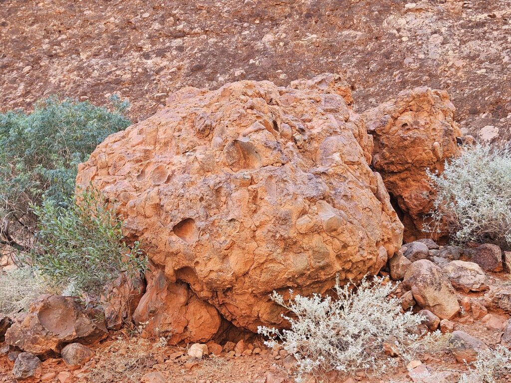 Obwohl die Trockenzeit ihr Maximum bereits überschritten hat, finden wir im «Red Centre» zu unserem Erstaunen viele Blumen! Das trockene Gras (oben rechts) hingegen, Spinifex, eines der widerstandsfähigsten Gräser auf der Welt, passt da schon eher in unser Bild.Rechtzeitig zum Sonnenuntergang erreichen wir das Ziel unserer langen Reise ins Outback: der Uluru bei Sonnenuntergang (fotografiert zu unterschiedlichen Zeiten)Der Uluru ist ein gewaltiger Sandsteinmonolith. Schätzungen zufolge entstand der Felsriese vor rund 550 Millionen Jahren. Er ragt 318 Meter über die umgebende Wüste, hat einen Umfang von 8 Kilometern und verläuft noch mindestens 2.5 Kilometer in die Erde hinein. Etwas näher betrachtet sind deutlich die schief stehenden Sandschichten erkennbar. Wind, Sonne und Regen haben während Millionen von Jahren daran geschliffen und gefeilt. Die Natur als Bildhauer und Künstler!Die Luft ist sehr trocken – unter 50% Luftfeuchte. Daher kühlt es in der Nacht auch stark ab. Einmal bis auf 13 Grad! Tagsüber steigt das Quecksilber bis auf über 35 Grad. Da kommt ein schattiges Ruheplätzchen doch sehr gelegen.Diese Formation sieht aus wie eine Welle. Solche Aushöhlungen am Uluru wurden von den «traditional owners of the land» (traditionelle Besitzer des Landes) – wie die Aborigines heute oft bezeichnet werden – schon vor über 60’000 Jahren als Zufluchtsort benutzt, wenn Anfangs der Regenzeit heftige Gewitter mit Blitz und Donner über die Ebenen zog.The Teaching Cave: Die Urbevölkerung hatte eine sehr intensive Beziehung zur Natur. Wetter, Tiere, Pflanzen oder Felsen sprachen mit ihnen, gaben ihnen Hinweise, wie sie sich zu verhalten haben und was sie tun sollten. Wichtige Figuren aus ihren von Generation zu Generation überlieferten Geschichten tauchen immer wieder auf. So haben etwa auch die gut erkennbaren Vorsprünge an der sonst glatten Felswand jeder eine Bedeutung, die auch heute unverändert gelten bei den Aborigines. Die Alten sassen mit den Jungen davor zusammen und erklärten ihnen, was die Vorsprünge bedeuten, und was sie einem mitgeben wollen.Kantju Gorge an der Westflanke des Uluru. Das Regenwasser hat hier über Millionen von Jahren eine Einbuchtung in den Felsen geschliffen. Die schwarze Verfärbung an der Wand stammt von Algen, die während der Regenzeit wachsen können. Am Fuss der Felswand befindet sich ein weiteres Wasserloch, das vom Grundwasser gespiesen wird. Auch in der härtesten Trockenzeit ist es mit Wasser gefüllt und versorgt die Bäume mit genügend Lebenssaft. Analysen des Wassers haben ergeben, dass es vor rund 50’000 Jahren vom Himmel gefallen ist.Feuchte und Wärme bedeuten gleichzeitig auch Mücken. Hier sind es aber vor allem lästige Fliegen, die sich intensiv und in grosser Zahl auf Nasenlöcher, Mundöffnung und Augen stürzen. Ein guter Schutz ist erforderlich.Rund 30 Kilometer entfernt in Sichtdistanz vom Uluru ein weiteres Phänomen der Natur: der Kata Tjuta. Eine Gruppe von 36 Felskuppen, von denen der mit 1069 Meter höchste Fels, der Mt Olga, 564 Meter aus der Umgebung herausragt.Kata Tjuta – eben so speziell, ebenso fantastisch wie der Uluru – aber viel weniger bekannt.Kata Tjuta: zwischen den einzelnen Felskuppen immer wieder tief eingeschliffene Schluchten, in denen es Wasservorkommen gibt und sich entsprechend üppige Vegetation ansiedelt.Im Gegensatz zum Uluru, dessen Fels aus feinem, kompaktem Sandstein gebildet ist, zeigt sich der Fels das Kata Tjuta deutlich uneinheitlicher. Faustgrosse, rund geschliffene Kieselsteine sind hier in der Felsmasse eingeschlossen. Sie deuten darauf hin, dass der Berg aus kompakten Schwemmmaterial, wie es bei grösseren Flussausläufen ins Meer oft vorkommt, besteht.