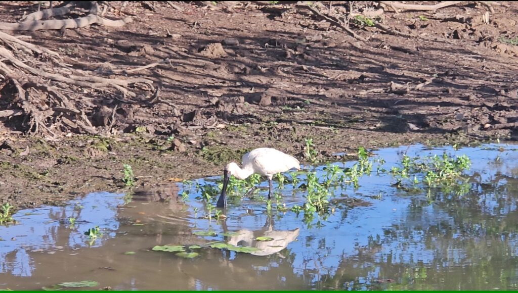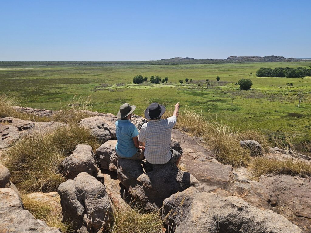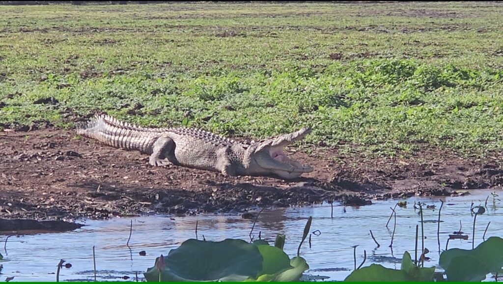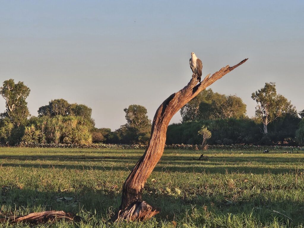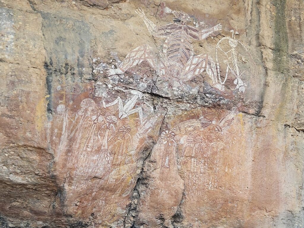 Karlu Karlu (von den Weissen «Devil’s Marbles», die Murmeln des Teufels genannt) ist eine heilige Stätte der Ureinwohner etwa auf halbem Weg zurück in den Norden. Ein weiteres Wunder der Natur. Diese Felsen aus Granit wurden über Millionen von Jahren ganz langsam von Wind, Regen und vor allem durch die extreme Hitze der Sonne bearbeitet. Dabei wurde Schicht für Schicht wie bei einer Zwiebel abgetragen und die Felsen in ihre heutige Form gestaltet. Das Werk der Natur zeigt sich sehr schön an diesem gespaltenen Exemplar.Der letzte grosse Park auf unserer Reise ist gleichzeitig der grösste Park in Australien. Der Kakadu NP, fast halb so gross wie die Schweiz, ist wohl einer der Parks, welche dem Besucher die Kultur der Urbevölkerung am nächsten bringt. Er grenzt direkt an ein riesiges Territorium (Arnhem Land), das sich weiter ostwärts bis zum Golf von Carpentaria ausdehnt und fast ausschliesslich von Aborigines bewohnt wird. Der Zutritt für nicht Einwohner ist nur mit einer speziellen Bewilligung erlaubt. Der Kakadu NP deckt ein riesiges Übergangsgebiet zwischen dem Meer und einem Hochplateau ab: flaches, sumpfiges Schwemmland geht über in felsiges Flachgebirge – schön zu sehen im Bild. Entsprechend sind Natur und Lebewesen extrem vielfältig und spannend.Typisches Bild kurz vor Ende der Trockenzeit. Die Wassermassen in den Ebenen sind verschwunden. Es sind nur noch kleine Teiche (Billabong genannt) zurückgeblieben, an denen sich die Tiere, welche auf das Wasser angewiesen sind, immer dichter drängen. In der Regenzeit liegt das ganze Gebiet meterhoch unter Wasser.Je nach Region kennen die Aborigines 5 oder 6 Jahreszeiten, die einzig und alleine durch die Natur bestimmt werden. So beginnt zum Beispiel «Bang Gerreng» («knock ‘em down season»), die Periode nach der Regenzeit («Gudjeuk»), dann, wenn die ersten Gewitter auftreten. Was genau ausschlaggebend ist in der Natur, die Bedeutung und wie man sich verhalten soll wird von den Alten, erfahrenen Leuten den Kindern und Jugendlichen weitergegeben, oftmals in Form von Zeichnungen (wie auf dem Bild)Das Gebiet von Nordaustralien hat eine lange und interessante geologische Geschichte. Hier findet man das älteste Oberflächengestein der Erde. Es entstand vor rund 2’500 Millionen Jahren, als sich an der Oberfläche der Erde die ersten Erstarrungen formten. Diese Gegend ist besonders wegen der sehr grossen Konzentration an Schwermetallen (unter anderem Gold oder Uran) einzigartig in der Welt. Vulkanische Aktivitäten, wiederholte Absenkungen und Verwerfungen der entstehenden Erdkruste, gefolgt von grossen Schwankungen des Meeresspiegels, haben die heutige Landschaft geprägt. Hier fand man Spuren der ersten Einwohner, die über 60’000 Jahre alt sind. Unsere Suche nach diesen Spuren führt uns ins bis zu 300 Meter höher gelegene felsige Hochland, wohin sich die als Nomaden lebenden Aborigines aus dem Schwemmland jeweils zurückzogen und die Regenzeit verbrachten.Die Aborigines betrachten Tiere, Pflanzen und Landschaft, die Natur insgesamt, wie eine lebende Person. Das Leben mit der Natur ist für sie gleichbedeutend wie das Leben in der Familie. Für uns «Balandas» (Nicht-Aborigines Menschen) eine Beziehung, die wir schon lange verloren haben. All das Wissen, die Fähigkeiten und Erfahrungen sind in Geschichten verpackt, welche mittels Zeichnungen an vom Wetter gut geschützten Felswänden von Generation zu Generation weitergegeben werden. Diese Geschichten beinhalten Gesetze, Instruktionen und wichtige Erkenntnisse, wie man untereinander und mit dem Land umgehen soll. Im Kakadu NP finden sich viele sehr gut erhaltene Felszeichnungen. Etwas Besonderes: nach der Tradition der Aborigines dürfen bestehende Zeichnungen nicht restauriert, nachgemalt oder ausgebessert werden. Das würde die Bedeutung, die Seele der Zeichnung verändern. Hingegen dürfen problemlos andere Zeichnungen darüber gemalt werden. Das verändert das ursprüngliche Bild nicht. Auf der Zeichnung im Bild, das als oberstes Motiv eine Tanzszene von einem Clan Treffen darstellt, sind deutlich andere, ältere Zeichnungen zu erkennen.Die Felskünstler stellten Geschichten dar, von denen man heute zum Teil nicht mehr genau weiss, was sie bedeuten sollen. Das ist aber durchaus in Ordnung. Ähnlich wie bei unseren Sagen werden Geschichten auf diese Weise im Verlaufe der Zeit verändert, der Erzähler dichtet etwas dazu, schmückt weiter aus – oder die Geschichte geht einfach vergessen, wenn sie ihre Bedeutung verloren hat. Die Zeichnung hier ist relativ neu und die Bedeutung noch einigermassen bekannt. Es stellt das Erscheinen des Lightening Man (Donnergott, oben) dar, der zusammen mit seiner Frau (Bildmitte) und den Kindern (welches in der Überlieferung leuchtend orange Grillen sind, gezeichnet rechts vom Donnergott) am Himmer erscheinen. Die Regenzeit wird abgelöst durch die Zeit der Stürme. Zeit für die Menschen, mit ihren Vorräten unter Felsvorsprüngen Schutz zu suchen.Wir stehen auf Felsen, wie bereits Tausende von Jahre vor uns die Aborigines. Eine ganz intensive und spezielle Vorstellung.Bei Sonnenaufgang starten wir eine Schifffahrt mit Yellow Water Cruise durch das Schwemmland im Oberlauf des South Alligator Rivers. Der Fluss hat eigentlich eine falsche Bezeichnung. Alligatoren gibt es hier nämlich keine. Aber der Geologe, der die Gegend hier erstmals kartographierte, kannte den Unterschied zwischen Krokodil und Alligator nicht. Als er die vielen Krokodile sah, gab er dem Fluss den falschen Namen, der sich bis heute hielt.Auge in Auge mit den SalzwasserkrokodilenDie Fahrt auf dem Schiff am frühen Morgen bringt uns sehr nahe an die Tierwelt heran. Vor allem Vögel drängen sich in dieser Jahreszeit in rieseigen Scharen und grosser Vielfalt eng ans restlich vorhandene Wasser. Im Bild: Weissbauch-Seeadler.Die Kammblatthühnchen werden auch «Jesus Vogel» genannt, weil sie mit ihren grossen Füssen scheinbar übers Wasser laufen können. 