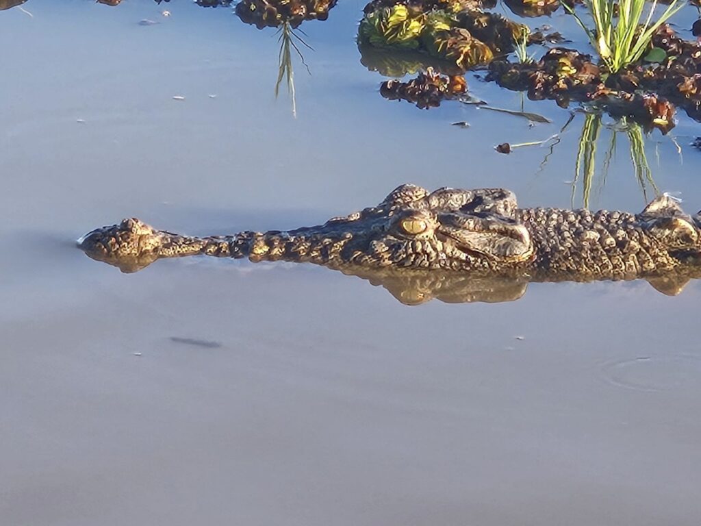 Wir wissen, dass es entlang der Nordküste von Queensland und an der ganzen Küste der Nord-Territorien entlang Salzwasserkrokodile gibt. Gesehen in freier Wildbahn haben wir aber noch keine. Nun, von unserem Ankerplatz nur etwa 100 Meter entfernt können wir sie jeden Tag beim Sonnenbaden beobachten. Sich im erfrischenden Nass etwas abzukühlen kommt definitiv nicht in Frage.Bevor wir weiter ziehen möchten wir die Thursday Insel doch noch sehen. Wir lassen unsere Lupina am Anker und nehmen die Schnellfähre, welche die beiden Nachbarinseln verbindet.Thursday Island: Auf unsere Karte entdecken wir mehrere Wanderwege und entscheiden uns für einen, der uns zu einem Aussichtspunkt führt. Der Weg ist zwar gut markiert und einigermassen unterhalten, der Aussichtspunkt dann aber eher enttäuschend, weil er schon stark zugewachsen ist. Trotzdem können wir gut die Nachbarinsel Horn und den davor vorgelagerten Ankerplatz erspähen.Am 24.8.2025 lichten wir den Anker, lassen den Ankerplatz (Bild) achterlich zurück und starten unsere Reise Richtung Darwin. Die Nordküste Australiens ist wenig zum Fahrtensegeln geeignet: die See ist unruhig mit kurzen, steilen Kabbelwellen, das Wasser durchwegs trüb und die Ankerplätze sind meist weit weg von der Küste, da das Wasser im Küstenbereich sehr flach wird und die Gezeiten über 5 Meter betragen. Segler, die diese Passage absolvieren, entscheiden sich deshalb oft für eine nonstop Fahrt bis Darwin. Wir planen aber, diverse Stopps einzulegen und möglichst viele Tages-Tripps zu machen. Irgendwie müssen wir ja die Zeit überbrücken, bis die Navionics Seekarten von Indonesien wieder verfügbar sind. Da die Marinas in Darwin wegen einer Rally ausgebucht sind, können wir auch nicht früher dort einchecken.Unsere erste Etappe wird die längste. Sie führt uns rund 340 Seemeilen von Horn Island über den Golf von Carpentaria zu den Wessel Islands. Wir haben guten Wind, aber die anfänglich kabbelige See lässt Lupina und Crew heftig hin und her, rauf und runter tanzen. Erst gegen Abend des ersten Tages auf See beruhigen sich die Wellen, und wir können entspannt der untergehenden Sonnen entgegen segeln.