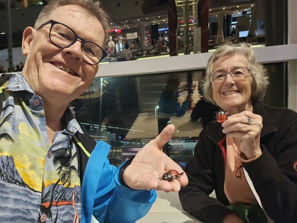 Damit auf der Reise alles gut klappt, und dass auch unser Gepäck gefüllt mit Ersatzteilen fürs Schiff heil ankommt, haben uns die Enkelkinder Glückskäfer aus Schokolade mit eingepackt. Sie haben perfekt geholfen: Reise gut, Gepäck gut.In Singapur (hier eines seiner Wahrzeichen: Marina Bay Sands Hotel) erwartet uns das beste Wetter. Es herrscht zwar jetzt bis Anfangs April Monsunzeit mit viel Regen, aber wir haben Glück: tagsüber scheint meist die Sonne, erst am Abend oder in der Nacht regnet es kurz und heftig.Kaum haben wir uns in der Raffles Marina wieder auf dem Schiff installiert und alle Systeme überprüft (alles in bester Ordnung vorgefunden – nur beim Probelauf des Generators haben wir festgestellt, dass dieser heiss läuft), wird die Lupina für diverse Arbeiten aus dem Wasser gehoben.