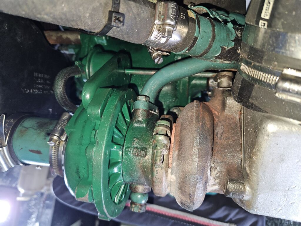Service am Hauptmotor Volvo-Penta, Austausch des Turboladers (zu grosses Lagerspiel, Ölleckage und abgenutzte Turbine und Verdichter)