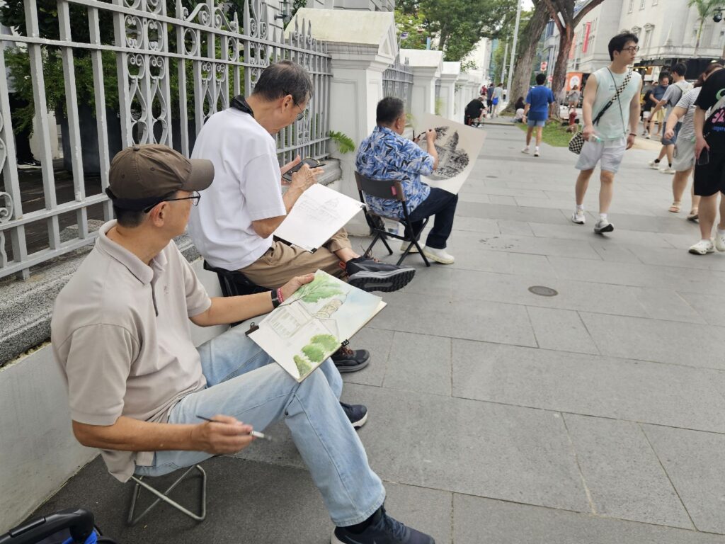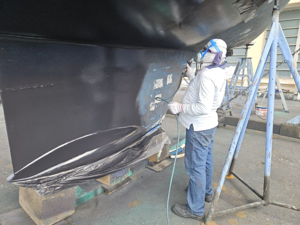Zu unserem Erstaunen hat sich auch nach über 6 Wochen Liegezeit in der Marina nicht allzu viel Bewuchs an unser Schiff geheftet. An den weissen Stellen sieht man aber gut, dass der blaue Schutzanstrich nicht mehr überall vorhanden ist.Als eine der ersten und für die Sicherheit des Schiffes sehr wichtigen Tätigkeiten, werden die Seeventile überprüft. Das machen wir auch unterwegs immer wieder. Deshalb haben wir auch vor dem Auswassern bereits entschieden, dass das Seeventil des vorderen WC’s ersetzt werden soll. Beim Ausbau ist es abgebrochen, und man sieht deutlich an der Bruchfläche, dass der Entscheid für den Ersatz genau richtig war.Die Kombination von verschiedenen Metallen und aggressiven Medien (Salzwasser), denen ein Seeventil ausgesetzt ist, sorgt oft schnell für Korrosion, Materialveränderungen und Undichtheiten: das Bild zeigt das vergammelte, alte Seeventil und den steinhart gewordenen Verbindungsschlauch.Das kritische Seeventil ersetzen wir mit einem Neuen aus Faserverbundwerkstoff (korrodiert nicht mehr), für die Bedienungs-Hähnen (Bild) wählen wir aus Gründen der Passung das bisherige Design für den Austausch.Die erste Arbeitswoche vergeht äusserst schnell. Wir sind hauptsächlich damit beschäftigt, Teile, die ersetzt werden müssen aber noch nicht an Bord sind, zu beschaffen. Internet ist da Gold wert. Abends plumpsen wir müde ins Bett. Aber an den Wochenenden nehmen wir uns Zeit für Stadtbesichtigung und Ausflüge. Für einen schnellen Überblick gönnen wir uns ein Tagesticket für den Hop-on Hop-off Bus. Dieser fährt an allen Sehenswürdigkeiten vorbei, und über Kopfhörer bekommt man die wichtigsten Informationen dazu. Hier fahren wir gerade durch «Little India»Singapur: nicht nur ein Gewusel von vielen Menschen, sondern auch eine enorme Vielfalt von Kulturen und Religionen, die hier friedlich und entspannt nebeneinander leben.Wir sind angetan von der grandiosen Architektur! Was da in den letzten Jahrzehnten auf dem neu gewonnen Land (viel Baufläche ist durch Aufschüttungen geschaffen worden) hochgezogen wurde, ist einfach fantastisch.Ein weiteres Beispiel der spannenden Architektur: Parkroyal Collection Pickering, das «Hotel im Garten», ein revolutionäres Konzept. Das Gebäude weist über 15’000 Quadratmeter bepflanzte Fläche auf, mit hängenden Gärten, Wasserbecken und begrünten Wänden. Es wirkt wie ein tropischer Wald mitten in der Stadt.Natürlich halten wir auch immer Ausschau nach anderen Seglern. Und siehe da, eines Tages weht da eine weitere Schweizer Fahne in der Marina. Caroline und Jean-Luc (nicht im Bild, musste leider weg und Ersatzteile besorgen – was denn sonst, schmunzel) aus der Westschweiz sind nun auch schon einige Jahre mit ihrem Katamaran «Droitdevan» auf Weltreise.Bei der Durchführung des Services am Motor entdecken wir viel Öl im Ladeluftkühler. Auch haben wir in letzter Zeit bemerkt, dass unser Motor neuerdings Öl verbraucht. Untrügliche Zeichen, dass der Turbolader (Bild) eine Leckage aufweist. Da wir bereits vom letzten Service in Fiji wissen, dass sowohl Turbine als auch Verdichter deutliche Verschleissspuren zeigen, entscheiden wir uns für einen Ersatz. Volvo bietet uns als günstigste Variante einen revidierten Turbolader für sündhaft teure Preise an. Dank Internet können wir direkt vom lokalen Vertreter des Originalherstellers (IHI in Japan) einen fabrikneuen Lader zu einem mehr als 3 mal günstigeren Preis eruieren.Der Ausflug nach «Chinatown» ist eigentlich nichts Besonderes, denn rund 70% der Bevölkerung Singapurs hat chinesischen Hintergrund. Der Gegensatz von den eher kleinen Häusern dieses Viertels zu den Hochhäusern in der Marina Bay Gegend (Hintergrund) ist aber faszinierend.Auf unserem Ausflug werden wir uns bewusst, dass bald das Chinesische Neue Jahr beginnt. Das Jahr des Feuer-Pferdes beginnt am 17. Februar 2026. Wir wissen, dass in dieser Woche – wie bei uns ja zu Hause auch über die Neujahrszeit – niemand arbeitet. Ups! Ein kleiner Schwierigkeitsgrad in unserer Arbeitsplanung.Wer Goldschmuck kaufen will, der ist in Singapur genau richtig – insbesondere bei den Indern. Die Goldläden sind meist gut frequentiert, das Geschäft brummt. Das verwundert nicht. Die Preise hier sind ebenso gut wie in den Vereinigten Arabischen Emirate, und die Qualität der Schmuckstücke ist tadellos.Vor der National Gallery finden viele Veranstaltungen statt. Es ist immer etwas los. Als wir vor den ehrwürdigen Gebäuden vorbeischlendern, führen gerade junge Trommler eine Kostprobe ihres Könnens vor …… und auf einer Nebenstrasse findet gerade ein Wettbewerb im Schnellzeichnen statt.Mittlerweile ist das Schiff gewaschen und die noch vorhandene Farbe angeschliffen. Damit es bei den Stützen nachher auch Farbe hat, werden direkt neben den Stützen bereits kleine Felder vorgemalt. Hier im Bild werden die Stützen nun neu auf diese bereits fertig bemalten Stellen verschoben.Bei allen bisherigen Anstrichen wurde die Farbe mit einem Roller aufgebracht. In Singapur wird sie zum ersten Mal aufgespritzt. Die Mitarbeiter der Werft arbeiten sehr sauber und zügig. Hier decken sie die Partien des Schiffes ab, welche keine Farbe abbekommen sollen.Die erste Lage besteht aus schwarzer Farbe. Die zweite Schicht wird dann dunkelblau, ebenso die dritte Schicht, die zusätzlich an den Stellen mit hohem Abrieb (Bug, Leitkanten von Kiel und Ruder, Wasserlinie) aufgetragen wird. Falls du dich fragst, warum wir unterschiedliche Farben verwenden, hier die Antwort: da beim Segeln durch das Wasser die Farbe abgenutzt wird, hilft es zu wissen, wieviel Farbe noch vorhanden ist. Sobald Schwarz erscheint, wissen wir, dass wir an einen neuen Anstrich denken müssen.Natürlich ein Muss für jeden Besuch in Singapur: ein Besuch auf das oberste Deck des Marina Bay Sands Hotel, eines der weltberühmtesten Hotels. Es ist 57 Stockwerke (226 Meter) hoch. 2’561 Hotelzimmer, verteilt auf 3 Türme, die oben mit einem schi