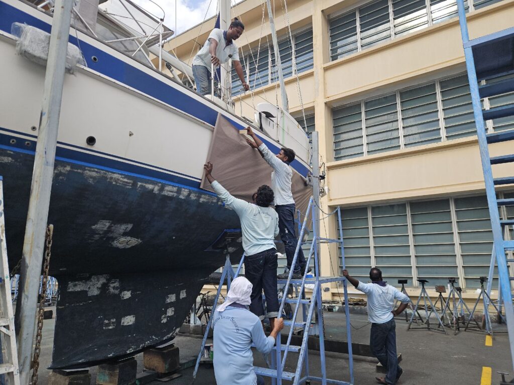 Lupina bleibt bis zu unserer Rückkehr Mitte Januar 2026 in der Raffles Marina, Singapore. Erst dann wird sie aus dem Wasser geholt für die Reparatur der Wellendichtung und den geplanten Unterhalt.