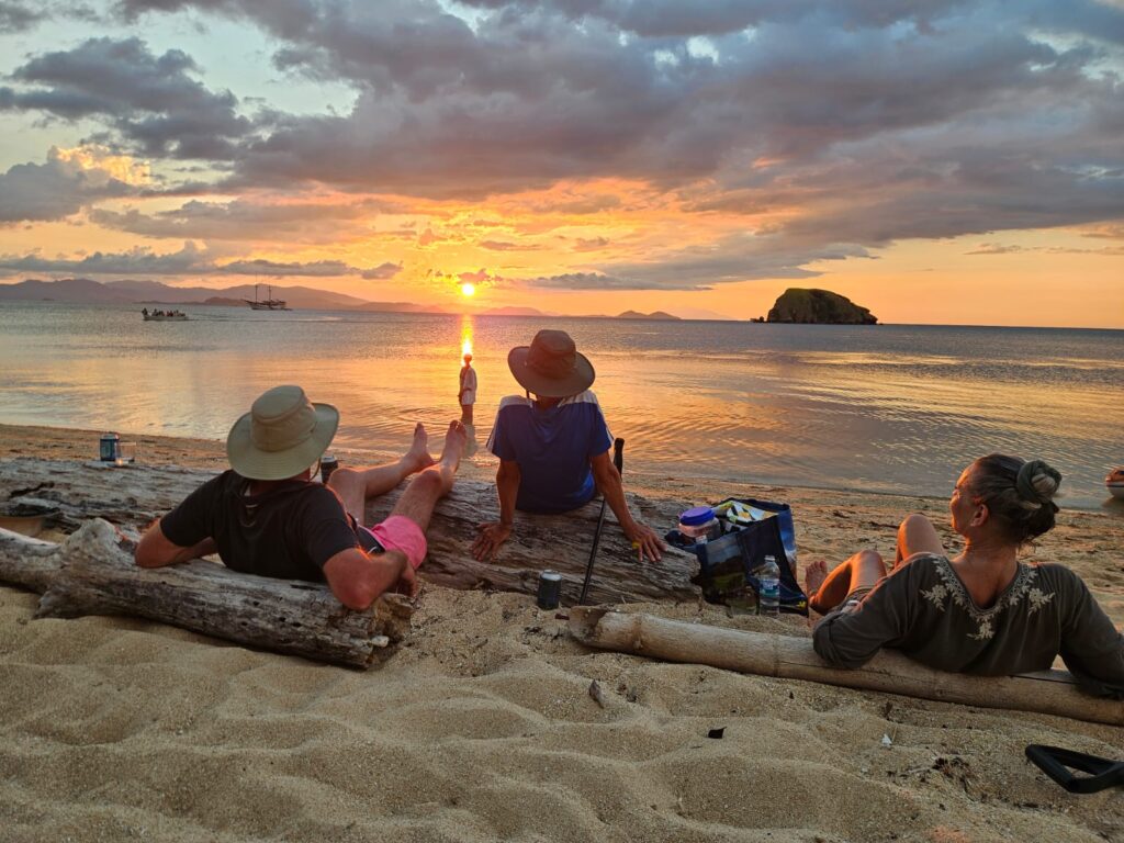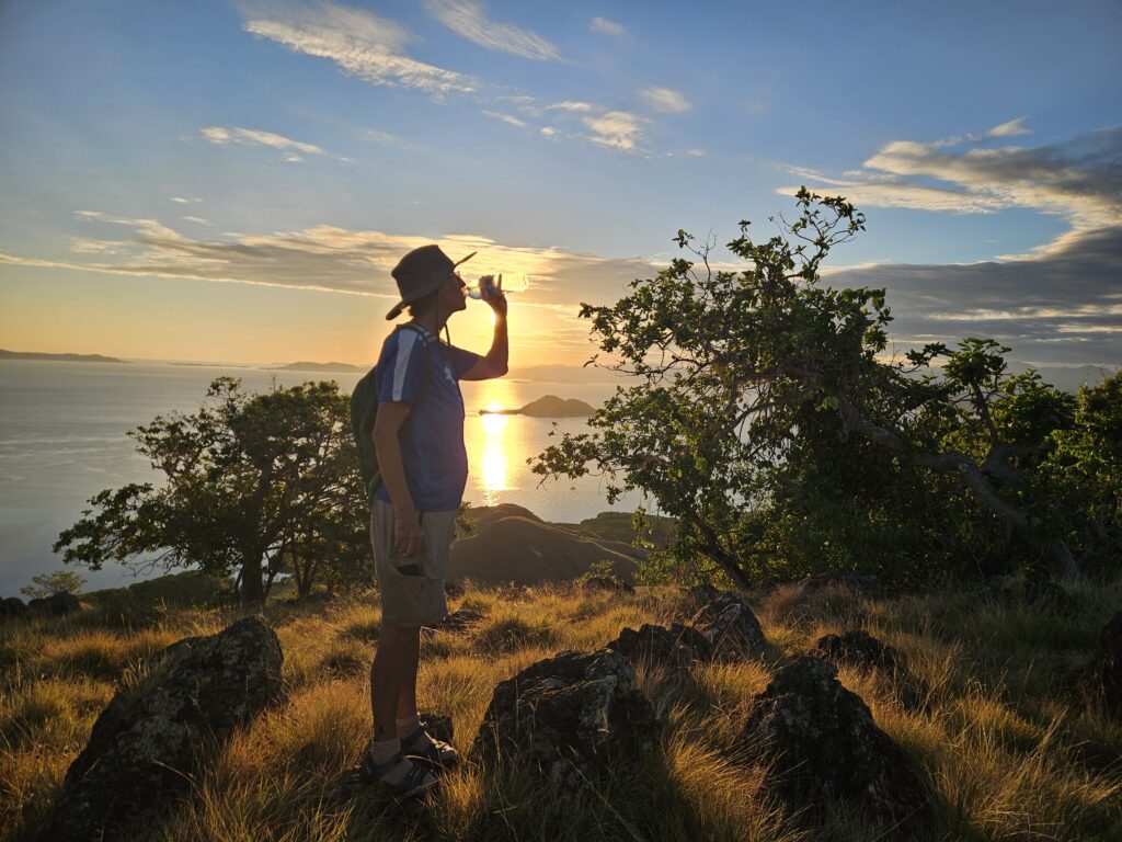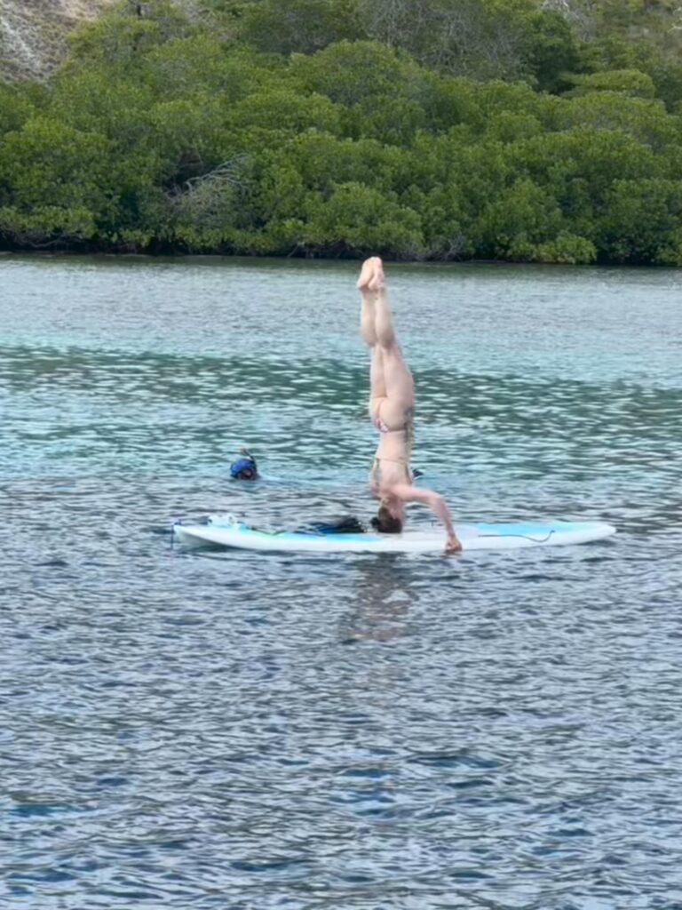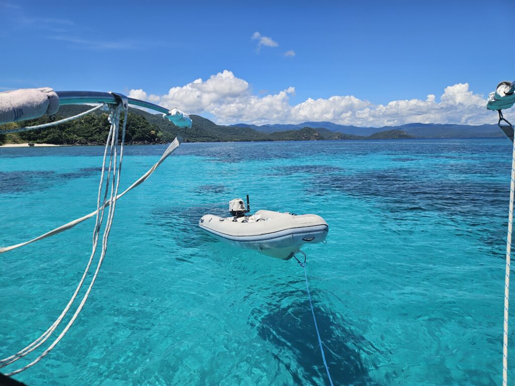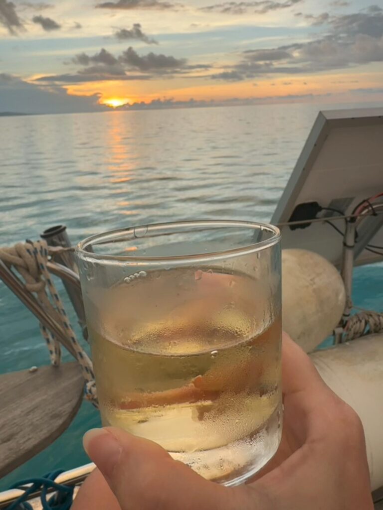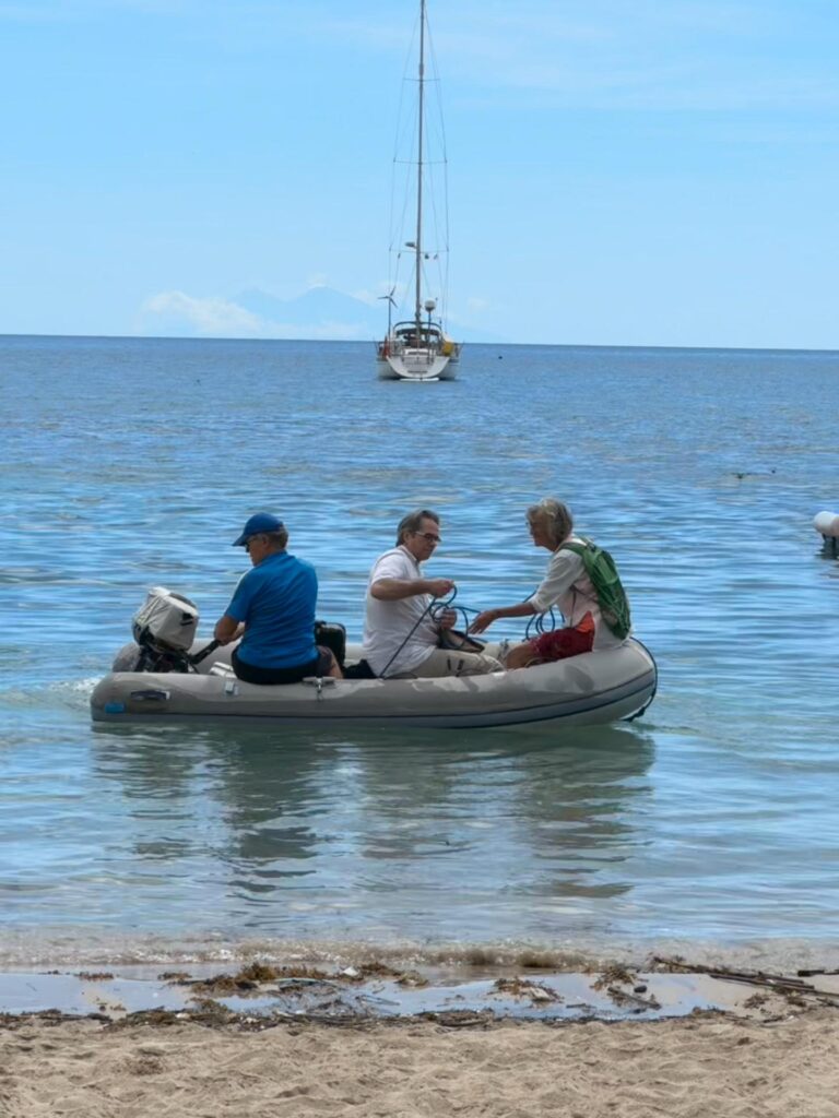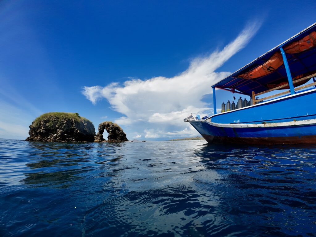Es geht direkt zur Bucht auf die Lupina – mit 3 Gästen und viel Gepäck ist das Dinghi ganz schön gefordert.Dann natürlich der obligatorische Welcome Drink.Und abends schon ein wundervoller Sonnenuntergang beim Essen an Land.Tara darf am nächsten Tag schon mit Robin (unserem Vorgänger auf der Lupina) ihren Tauchkurs beginnen. Das Ganze fängt erst mal an im Pool. Für Köbi gibt es ebenfalls eine Auffrischung seiner Tauchskills.Bereits am folgenden Tag geht es für die Tauch-Crew (Köbi, Robin und Tara) ins offene Meer.Speziell für Tara und Robin ein unvergessliches Erlebnis.Umgeben von Mantarochen ….…. wunderschönen Korallenriffen und farbenfrohen Fischen wohin das Auge reicht, kann man sich kaum satt sehen.Robin und Tara bleiben für einige Tage im Tauchkurs und wir ziehen uns auf die Lupina zurück und lassen die Leinen los. Zu einem traumhaften Ankerplatz bei der Insel Sebabi – wo der Ankertrunk gleich auch zum Sundowner wird.Wir bleiben – es ist soooooo schön hier!!Fast kitschig – die Fotos sehen aus wie KI. Köbi lässt seit langem wieder einmal mit Dani die Drohne steigen – und so entstehen Postkartenföteli am Band … und wir geniessen den nahen Strand und die Ruhe, denn wir sind alleine auf weiter Flur.Nur umgeben von vielen Fischern, die mit ihren Knatterkuttern an uns vorbeiziehen. Auffällig: im Gegensatz zu anderen Ländern sind sie hier von oben bis unten eingemummelt.Wir machen es uns zwischendurch am Strand gemütlich, wo vermutlich Einheimische eine kleine «Unterkunft» gebaut haben – ideal zum Chillen und snacken …Während dessen gehen Robin und Tara weiterhin die Unterwasserwelt erkunden.Wie soll es auch anders sein – sie treffen im Tauchkurs auf andere Schweizer.Der Tauchplatz Batu Bolong (Loch im Felsen) gehört aufgrund seiner Artenvielfalt zu den 10 schönsten Tauchplätzen der Welt !Tara hatte während dem Tauchkurs einen Tag frei und nutzte diesen, um den Wasserfall Cunca Wulang zu erkunden. Die Fahrt dorthin mit dem Motorrad machte das Erlebnis besonders aufregend.Nachdem Robin und Tara ihre Tauchkurse (OW, AOW, und Enriched Air) abgeschlossen hatten, ging es für uns alle gleich am nächsten Tag auf eine Speed-Boat-Tour.Ein verschwitztes Gruppenfoto nach über 800 Treppenstufen darf natürlich nicht fehlen. Für die Aussicht hat es sich aber absolut gelohnt!Der nächste Stopp unserer Tour brachte uns direkt auf die Komodo Insel, wo wir die so genannten ‘Komodo Dragons’ in ihrer natürlichen Umgebung erleben durften. Mit drei !! lokalen Guides pro Gruppe natürlich, weil die Biester echt gefährlich sind. Fun Fact: ein Komodowaran kann eine Geschwindigkeit von über 20 km/h erreichen und ihr Biss ist giftig. Ausgewachsen können sie bis zu drei Meter lang werden und ein Gewicht von bis zu 150 kg erreichen – etwas Sicherheitsabstand lohnt sich also. Daher posieren wir als Gruppe mal lieber mit einer überlebensgrossen Statue.Weiter führte uns die Tour zu einer Sandbank, die gerade so über die Wasseroberfläche ragte – und das mitten im Ozean.Am Tag nach der Speed-Boat-Tour verabschiedeten wir uns vorübergehend von Flores und machten uns auch den Weg nach Westen. Mit Tara am Steuer ! (Sorgfältig überwacht vom Captain)An unserer Destination bei Sebayur Besar angekommen, durfte das Auskundschaften des Ankerplatzes, sowie eine kurze Yoga Einheit nicht fehlen.Unser Sundowner-Plätzchen am Strand inklusive Lagerfeuer spricht für sich.Das nächste Sonnenspektakel folgte bereits am nächsten Morgen. Pia, Köbi und Tara machten sich früh auf den Weg, um den Sonnenaufgang auf dem höchsten Punkt der Insel zu erwischen.Die kleine Erfrischung nach dem Anstieg tat gut!Dann geht’s zurück nach Labuan Bajo, wo schon der nächste Ausflug wartet. Wir haben online einen Fahrer gebucht, der uns in der Umgebung zu speziellen Plätzen fährt. Erster Stopp: die Batu Payung Höhle, die erst in den 50-er Jahren von einem Holländer entdeckt wurde und spannende Felsformationen bietet.Batu Payung (Patu = Stein / Payung = Schirm) ist ein passender Name die Touristenattraktion.… und schon ab zur nächsten Höhle – die Rangko Cave erreicht man nur per Boot und einem kleinen Fussmarsch– und es ist spektakulär darin zu baden. Echt ein Erlebnis!Immer nah beobachtet von Affen geht’s zur nächsten Attraktion.Der Sylvia Hill ist ein weiterer Aussichtspunkt, den man sich allerdings auch hart und schweisstreibend erarbeiten muss! Die Sonne knallt von oben, kaum Wind und eine brutale Hitze …. trotzdem muss es fast sein, denn von hier oben hat man eine wunderschöne Aussicht über ganz Labuan Bajo.