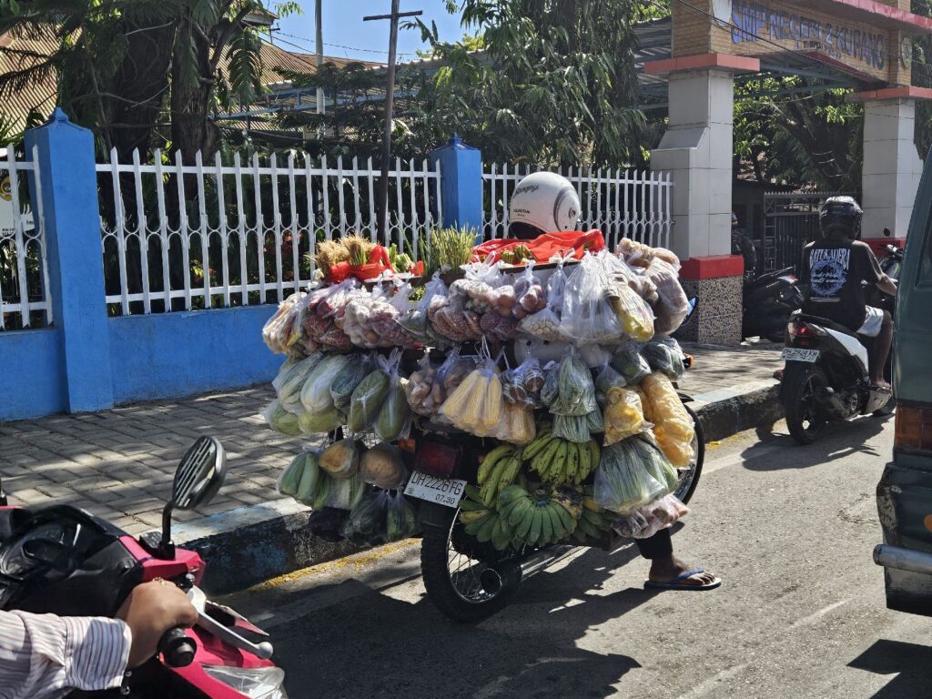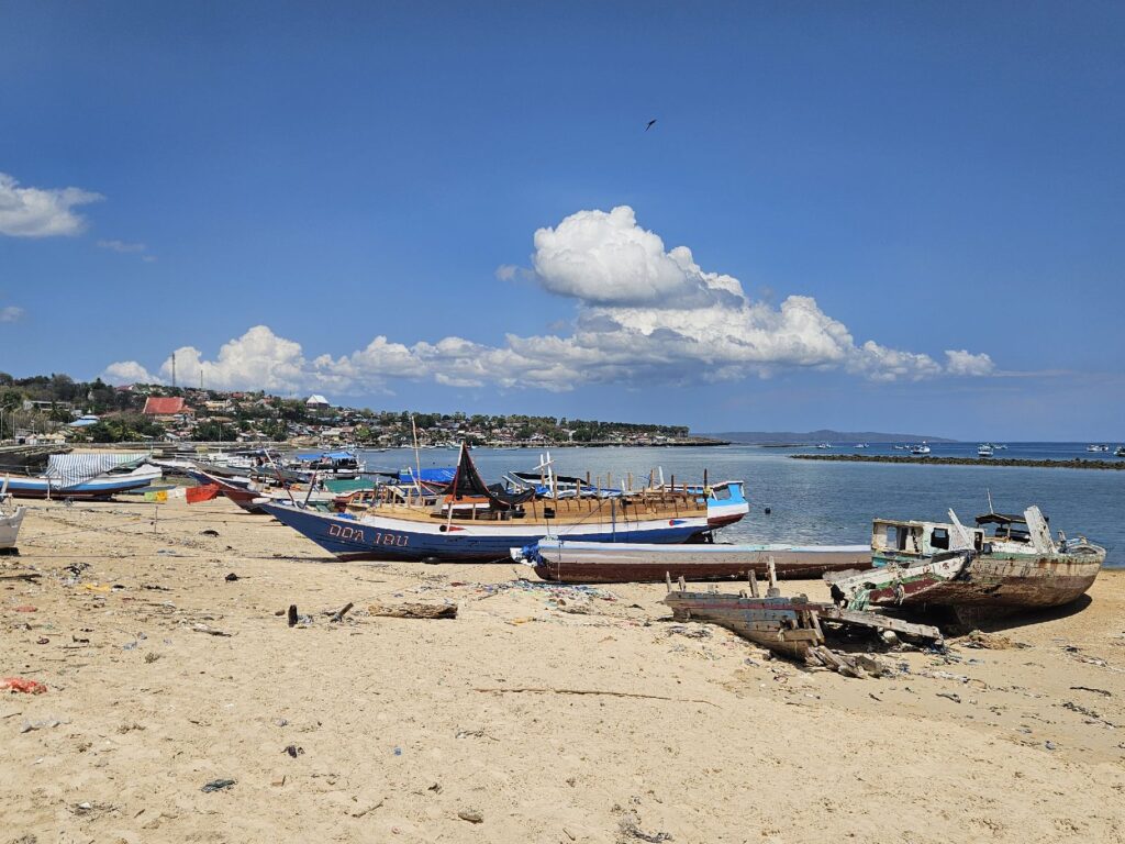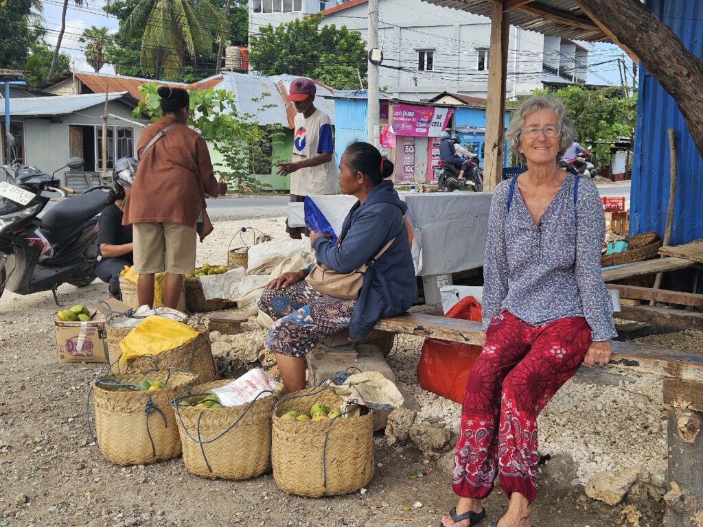Die Büros der Behörden liegen mehrere Kilometer auseinander, befinden sich am Flughafen oder im Handelshafen. Wir liegen irgendwo dazwischen. Zu weit und zu heiss, um die Behördengänge zu Fuss zu absolvieren. Wir mieten uns ein Taxi und geniessen es, entspannt die Strassenszenen zu beobachten.Darauf haben wir uns gefreut: die Frucht- und Gemüsehändler. Direkt bei der Anlegestelle für unser Dinghi finden wir auch gleich die von uns heiss geliebten Mangos – frisch vom Baum.Wasser und andere Getränke? Nein – aufgepasst! Hier handelt es sich um Benzin für die Mopeds. Für den Personentransport und zum Fischen werden Langboote von unterschiedlicher Grösse verwendet. Alle sind aus Holz gebaut und verlangen entsprechenden Unterhalt. Das Bild zeigt eine typische Werft für solche Boote. Das Schiff in der Mitte erhält gerade einen neuen Aufbau. Andere Schiffe warten auf die Ausschlachtung und die Wiederverwendung noch brauchbarer Teile.Etwas mehr als zwei Tage nach dem Besuch der Quarantänebeamten erhalten wir den letzten Stempel mit Unterschrift. Mit seinem Papier bestätigt der Hafenmeister, dass wir von allen Behörden geprüft und als gut befundet worden sind. Somit sind wir offiziell einklariert und dürfen uns nun frei in indonesischen Gewässern bewegen. Ein fast feierlicher Moment 😉Gleich am nächsten Tag nutzen wir unsere wieder erlangte Freiheit. Bei herrlichem Wetter, leichtem Wind und flachem Meer lichten wir den Anker und segeln weiter. Unser Ziel ist die Nordküste der Insel Flores. Dazu müssen wir von Kupang aus zuerst nordwärts über die Savu See und durch eine von vier möglichen Passagen durch eine Zeile von Vulkaninseln hindurch in die Flores See. Weil wir starke Strömungen erwarten, wählen wir den breiten Durchgang von «Selat Boleng». Die Fahrt führt uns an typischen Vulkankegeln vorbei.Die ganze Strecke beträgt etwas mehr als 130 Seemeilen. Es ist eine Nachtfahrt erforderlich. Obwohl wir uns vorgenommen haben, dass wir in Indonesien keine Nachtfahrt machen wollen (viele unbeleuchtete Schiffe, Fischnetze und andere in der Nacht unsichtbaren Hindernisse), geht es nicht anders. Wir planen die Fahrt aber so, dass wir während der Nacht das Durchfahrtsgebiet der grossen Frachtschiffe passieren. Hier erwarten wir keine dieser von Seglern gefürchteten Hindernisse anzutreffen. Alles geht gut und wir erreichen nach rund 35 Stunden Fahrt unseren Ankerplatz auf der Insel Adonara.Am nächsten Tag verholen wir 5 Meilen westwärts in die grosse Bucht von Sagu. Hier gibt es ein kleines Dorf und wir freuen uns auf einen Landgang.Wir wandern auf einem Fussweg dem Ufer entlang. Bei einem kleinen Fluss hören wir schon von Weitem Stimmen und Kindergeschrei. Wir kommen näher und bevor wir die Waschfrauen im Fluss richtig sehen können, rufen sie uns zu: «Hello Mister! Come, come!». Ach, was für ein fröhlicher Empfang. Die Frauen unterbrechen ihre Tätigkeit und umringen uns. Sie freuen sich sichtlich über dieses aussergewöhnliche Ereignis und an einer willkommenen Pause. Eine junge Frau reicht uns unbekannte, rote Früchte und bedeutet uns, dass wir sie essen sollen. Die süss-saure Frucht schmeckt ausserordentlich erfrischend.Wir brauchen nicht darum zu bitten – sie fordern uns selber auf, doch bitte Fotos zu schiessen. Ein der Frauen schnappt meine Sonnenbrille und wirft sich neben Pia in Pose. Nach meinem Bild wollen auch alle anderen noch ein Selfie von der Gruppe schiessen. So herrlich!Typische Langboote. Diese hier werden als Fähren benutzt. Das Knattern der Motoren (vermutlich grossvolumige Einzylinder-Maschinen) erinnert an einen Presslufthammer oder an die alten Einachser der Bauern in unserem Dorf vor 60 Jahren.Wir sind definitiv eine Attraktion im Dorf. Die Kinder folgen uns auf Schritt und Tritt. Unterhalten können wir uns – der Technologie sei gedankt – mit einem Übersetzungsprogramm auf unseren Handys. Unsere ins Gerät diktierte Frage «spielt ihr gerne Fussball?» wird über Lautsprecher in für uns unverständlichen Worten wider gegeben, worauf die Jungs mit einem lautem Bestätigungsgeschrei antworten: «Messi! Messi! – Ronaldo! Ronaldo!». Die Welt ist hier noch in Ordnung.Leider bedeutet Segeln auch immer wieder Abschied nehmen. Am Tag nach unserem Besuch im Dorf geht’s schon wieder weiter westwärts. Auf dieser Fahrt bestätigt sich auch, was wir schon öfters gelesen hatten. Überall schwimmen solche rund ein Kubikmeter grosse Klötze im Wasser. Manchmal sind es auch zwei Meter grosse Flosse aus Bambus. Alle haben denselben Zweck: durch ihren Schatten kleine Fische anziehen. Diese wiederum locken grössere Raubfische an, die dann, so hoffen die Fischer, in ihren Netzen hängen bleiben. Schon tagsüber schlecht sichtbar, sind solche FAD («Fisch Attracting Devices») in der Nacht gefährliche Hindernisse, die Schäden am Rumpf oder Ruder verursachen können.Die Fischer in ihren kleinen Kanus beobachten das Wasser sehr intensiv. Wellen, Vögel und Geräusche verraten ihnen, wo sie das Netz auslegen sollen.Am 19. Oktober setzen wir über auf die Insel Flores. Die ersten eineinhalb Stunden der 55 Seemeilen langen Fahrt herrscht absolute Windstille. Die Wolken über den Bergen deuten aber bereits an, dass bald ein Küstenwind einsetzen wird.Der Wind bläst mittlerweile querab und wir machen nun unter Segeln gute Fahrt. Kurz vor Sonnenuntergang erreichen wir unseren Ankerplatz.Gut ausgeschlafen geht es am nächsten Tag bereits wieder weiter. Diesmal sind es «nur» 40 Seemeilen. Auch heute wieder: am Morgen früh noch kein Wind, aber sobald die Thermik an der Küste entlang zu funktionieren beginnt, können wir segeln. Am neuen Ankerplatz, in der Batu Boga West Bucht, leben Fischer mit ihren Familien. Die besuchen uns auch gleich mit dem Kanu und fragen uns nach Taucherbrillen und T-Shirts. Im Gegenzug kommen frische Kokosnüsse auf die Lupina.In einem kurzen Hüpfer geht es weiter zum nächsten Ankerplatz, nach Nagar Ujong. Eigentl