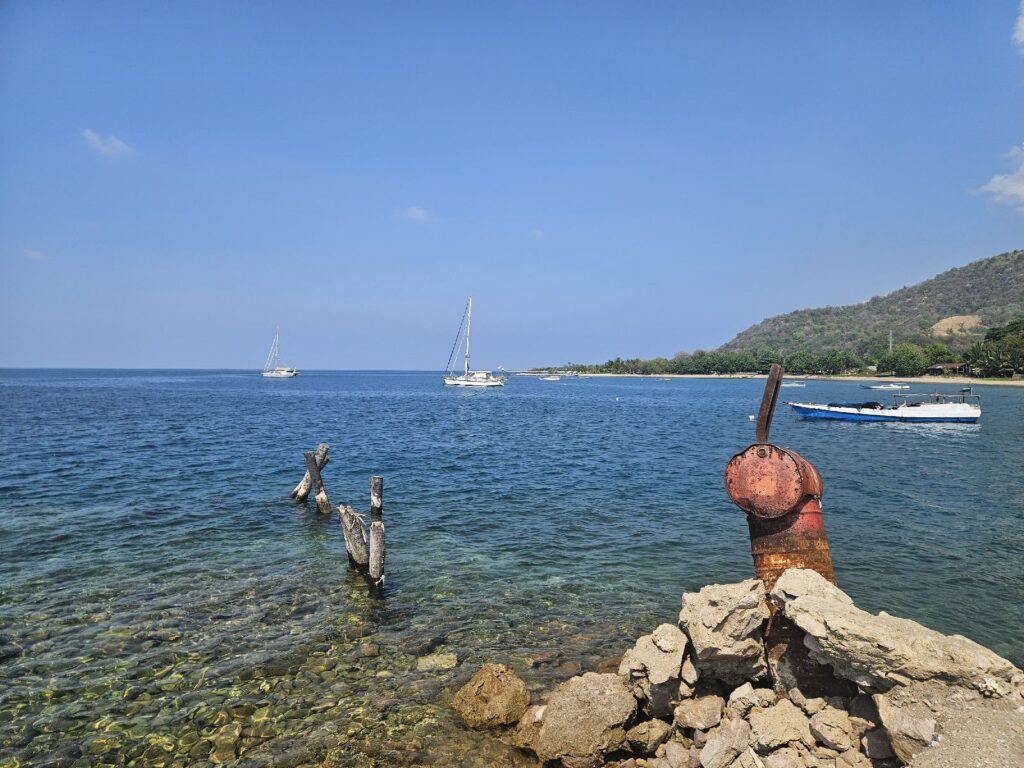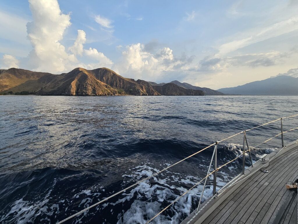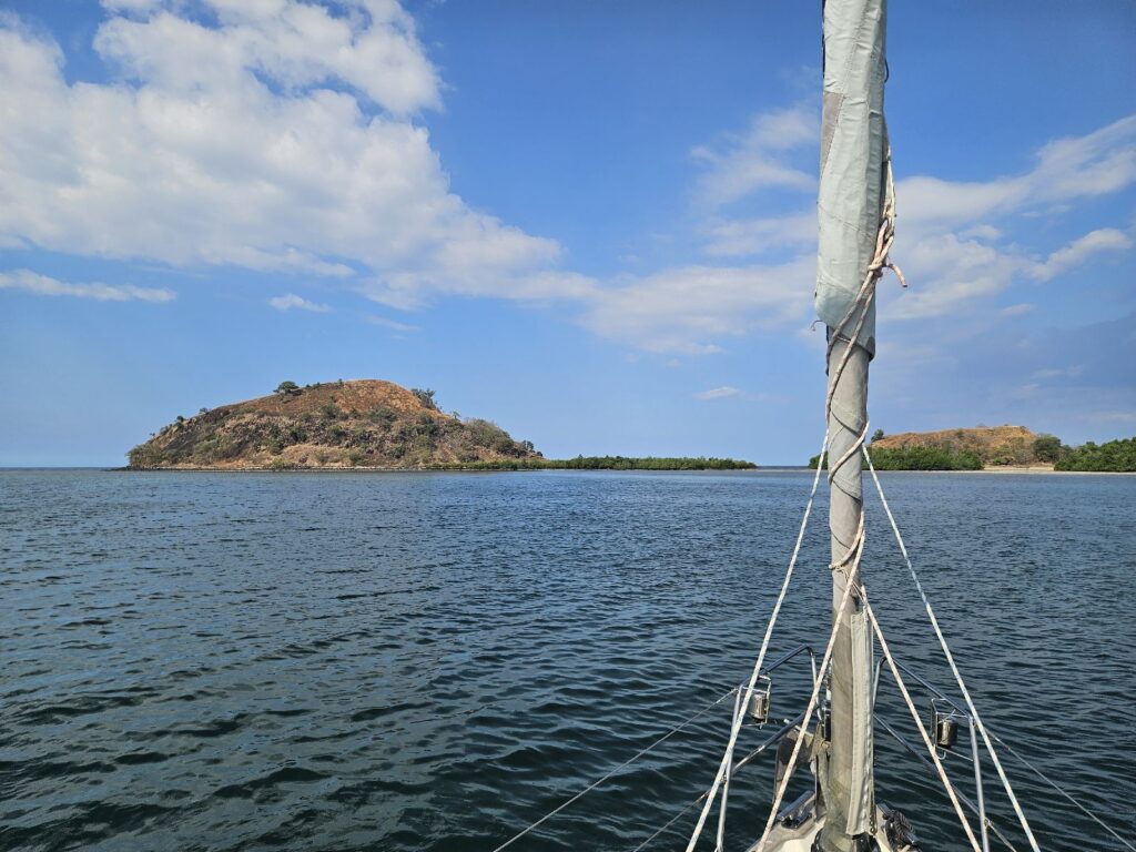 Nach dem sehr interessanten und lehrreichen Landausflug geht es nun wieder weiter der Nordküste von Flores entlang. Die Wasserleckage an der Wellendichtung haben wir vorläufig im Griff, versuchen aber intensiv, eine Möglichkeit zu finden, wo wir das Schiff aus dem Wasser holen können für eine Reparatur. In diesem Teil von Indonesien findet sich jedoch nichts. Also geht es mit diesem Handicap vorläufig weiter westwärts.